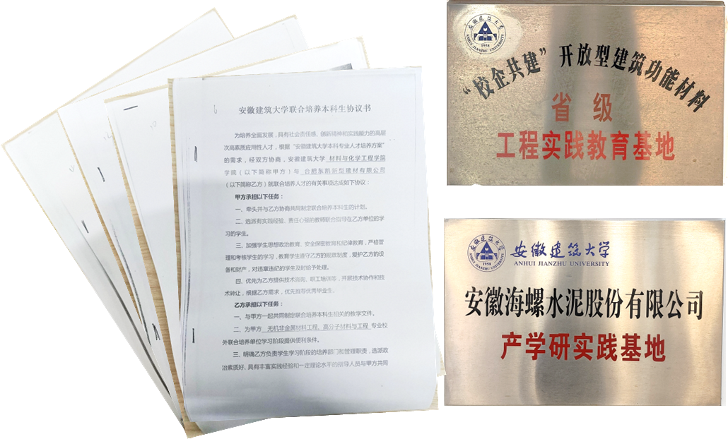 为了加强对学生实践能力的培养,无机非金属材料工程专业与海螺水泥、景德镇陶瓷、朗凯奇科技有限公司等多家知名企业签署了校企共建实训基地,方便本专业学生更直接的了解无机非金属相关行业和企业的发展现状和技术难题,为学生们的就业提供了宝贵经验。除此以外,专业为了学生德智体美劳综合能力的培养,围绕无机非金属材料工程的专业特点,指导学生开展各类课外活动和比赛竞赛,并取得了丰硕的成果。