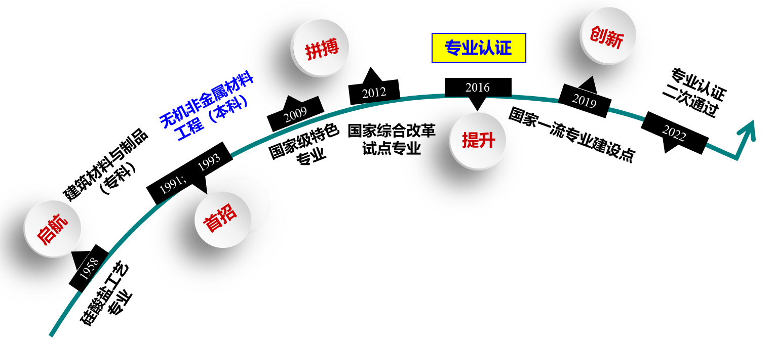 无机非金属材料是我国国民经济发展的重要基础原材料工业,是改善民生的基础性产业,也是支撑国防、航天航空以及节能环保、新能源、新材料、信息产业等战略性新兴产业发展的重要产业。传统的无机非金属材料工业的升级改造及新型功能性无机非金属材料开发是我国材料领域的热点和关键。无机非金属材料工程是一门涉及化学、物理、材料科学和工程等多领域的交叉学科,主要研究以无机非金属材料为主体的各类材料的理论基础和应用领域。beat365在线唯一官网无机非金属材料工程专业隶属于材料科学与工程一级学科,前身为1958年建校时设立的硅酸盐专业,1959年招收首届学生。1991年更名为建筑材料与制品专业(专科);1993年更名为无机非金属材料工程专业(本科);2008年、2009年分别获批为省级特色建设专业和国家级特色专业;2011年成为省级人才培养模式创新试验区; 2012年被列为国家级专业综合改革试点专业。2016年首次通过国家教育部工程教育专业认证;2017年被列为安徽省特色(品牌)专业,2019年获批国家一流专业;2022年通过国家教育部工程教育专业认证复评。