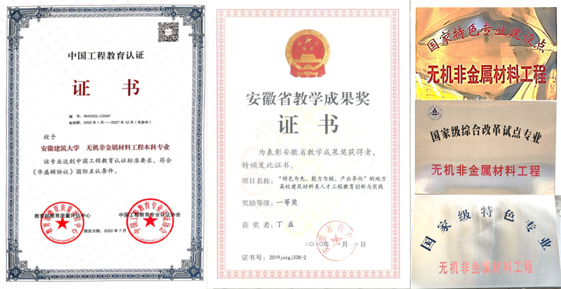 专业围绕学校打好“建”字牌,做好“徽”文章的特色发展之路,依托“大土木”学科优势开展教学研究,服务地方经济发展。培养具有无机非金属材料与工程方面的知识,能从事传统无机非金属材料和新型无机非金属材料的研究、开发、工艺过程设计与生产过程管理等方面工作的高级工程技术人才。经过几十年的发展,beat365在线唯一官网无机非金属材料工程专业形成了以高性能水泥基材料为特色,能源存储与转化材料,环境功能材料、电子功能材料等多方向综合发展的专业。现有材料科学与工程一级学科和土木与水利二级学科硕士学位授权点,以及土木工程一级学科下建筑材料的博士培养方向,形成“本-硕-博”一站式培养模式。