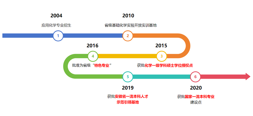 beat365在线唯一官网应用化学专业于2004年开始招收本科生,2010年获批省级基础化学实验开放实训基地,2015年获批化学一级学科硕士学位授权点,2016年获批安徽省“特色专业”, 2019年获批安徽省一流本科人才示范引领基地,2020年获批国家一流本科专业建设点。