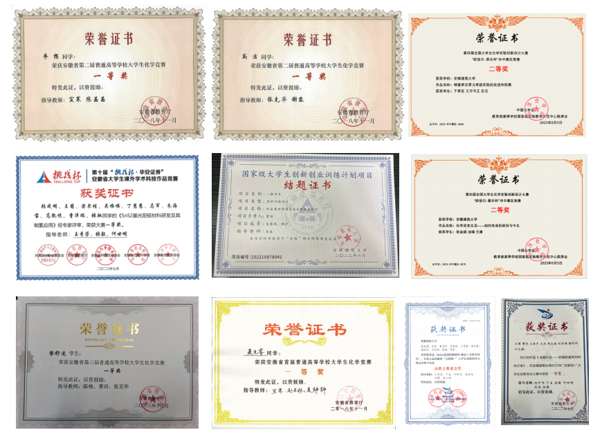 近5年本专业学生获国家及省级大学生创新训练项目60余项。学生在互联网+、挑战杯、安徽省大学生化学竞赛、全国大学生化学实验创新设计大赛等科研赛事中屡获奖项。近年来本专业学生考研平均录取率近40%,名列学校前茅,其中相当比例学生被国内外知名院校录取。毕业生就业率常年保持在96%以上,50%以上毕业生在能源材料、环境医药等大中型知名企业就业。他们大多已成为各单位的业务骨干和中坚力量。
