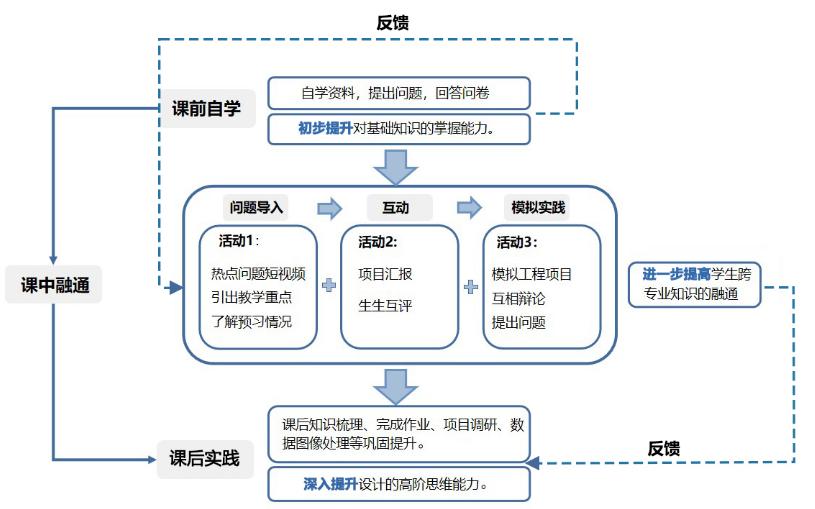 基于学校大土建学科专业齐全优势,围绕专业知识、能力、素质教育,培养学生综合性高阶设计思维,坚持“新文科”建设为指导,以学生为中心,以科研结果为导向,固守本专业基本理论,跨专业知识横向融通,交叉融合重构教学内容,从而引入“学科前沿”和“工程项目实际”案例,进而增加课程内容的实践性设计;教学资源的多元立体化构筑,以本专业知识纵向深入为视角,通过线上线下结合、实践项目实施与课堂仿真实验相结合,提高学生对内容的掌握能力;三是合理运用现代技术手段,以进行跨专业知识横向融通为视角,组建“学习综合圈”,带动深度思考;修“自学、融通、实践”的学习方法,提升综合性高阶思维能力;四是设置过程性评价和终结性评价结合评价体系,注重评价的维度、深度和广度,提高学习动力和热情;五是以社会热点问题深挖课程思政元素,不断更新思政内容,坚持课堂教学、平台实践及项目实践“三课堂”联动育人,激发学习热情。