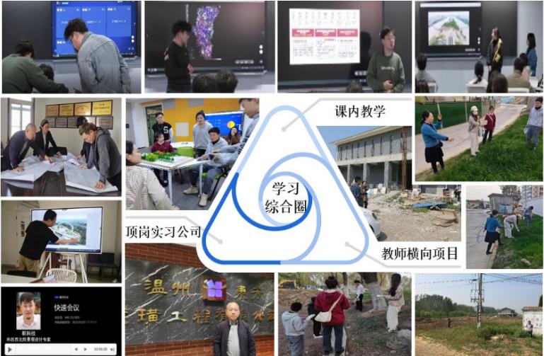 守本创新、跨界融合,培养学生高阶思维能力。课堂以学生项目汇报为主要形式,通过翻转课堂提高学生课堂活动的参与度,促使学生思考突发水文事件背景下环境设计理念的功能性、适宜性。课外,利用教师横向科研、实习基地等,拓展学生的理论运用实践的广度和深度。从而构建“学习综合圈”,培养跨专业知识综合运用高阶思维。“三课堂”联动思政育人,激发学习热情。利用课堂教学主渠道,采用情境创设、社会环境保护和破坏等热点问题,发起学生讨论、辩论,把中国特色社会主义生态观、可持续发展等理论融入课堂,引领学生崇敬大国工匠精神,提高学习动力的问题。以社会实践课堂为战场,通过邀请专家、专业竞赛、实践项目等,引领学生担当公园城市建设大任,端正学习态度。以实践基地课堂为阵地,通过定向任务、考察实习、传帮带等,引领学生培养复合型人才,激发学习热情。