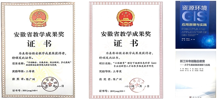 近年来,本专业先后获评安徽省教学成果二等奖3项、三等奖4项,获批“遥感基础与图像处理”国家级一流课程、安徽省AI+教育智慧课程等省级一流课程3门,安徽省重大或重点等教学研究项目20多项,公开发表教研论文20余篇。编写出版教材3部,其中省级规划教材2部。专业先后承担国家自然科学基金项目2项,安徽省重点研究与开发计划项目1项,其他省部级科研项目20余项,出版学术专著2部,在SCI、CSCD等核心期刊发表科研论文100余篇,获安徽省科学技术一等奖1项,二等奖1项,三等奖1项。在农业遥感、城市体检、耕地保护、湿地遥感、水环境遥感等领域承担社会服务项目30余项,到账经费达800余万元。