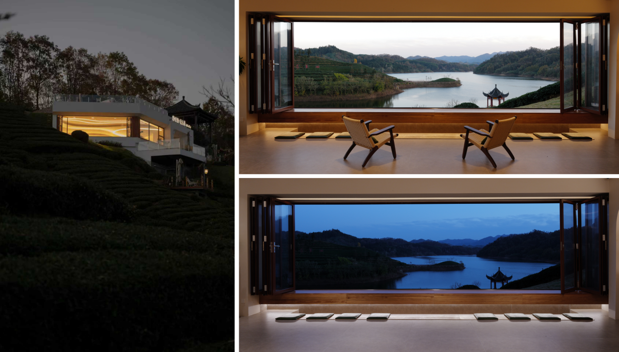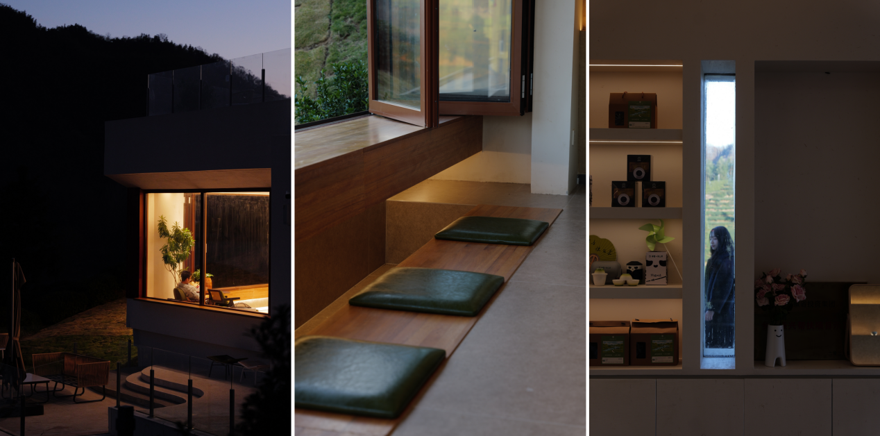 【茶田之间的“村咖”建筑,嵌入地形,两面覆土,两面观景,成为山水间的一处诗意点缀】