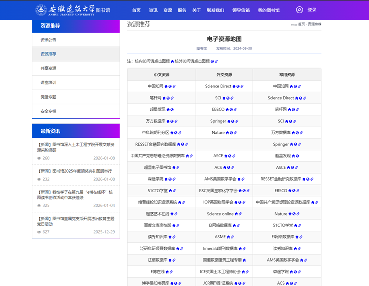 2024年上线的“电子资源地图”,打破了电子资源校外访问壁垒。该平台一站式整合馆购的近百个资源的访问地址,将学校统一身份认证系统与CARSI等远程访问技术深度融合,彻底解决了长期困扰师生的校外访问电子资源难题。作为图书馆访问量增长最快的服务页面,“电子资源地图”的落地运行,标志着图书馆电子资源远程获取保障能力实现跨越式提升。