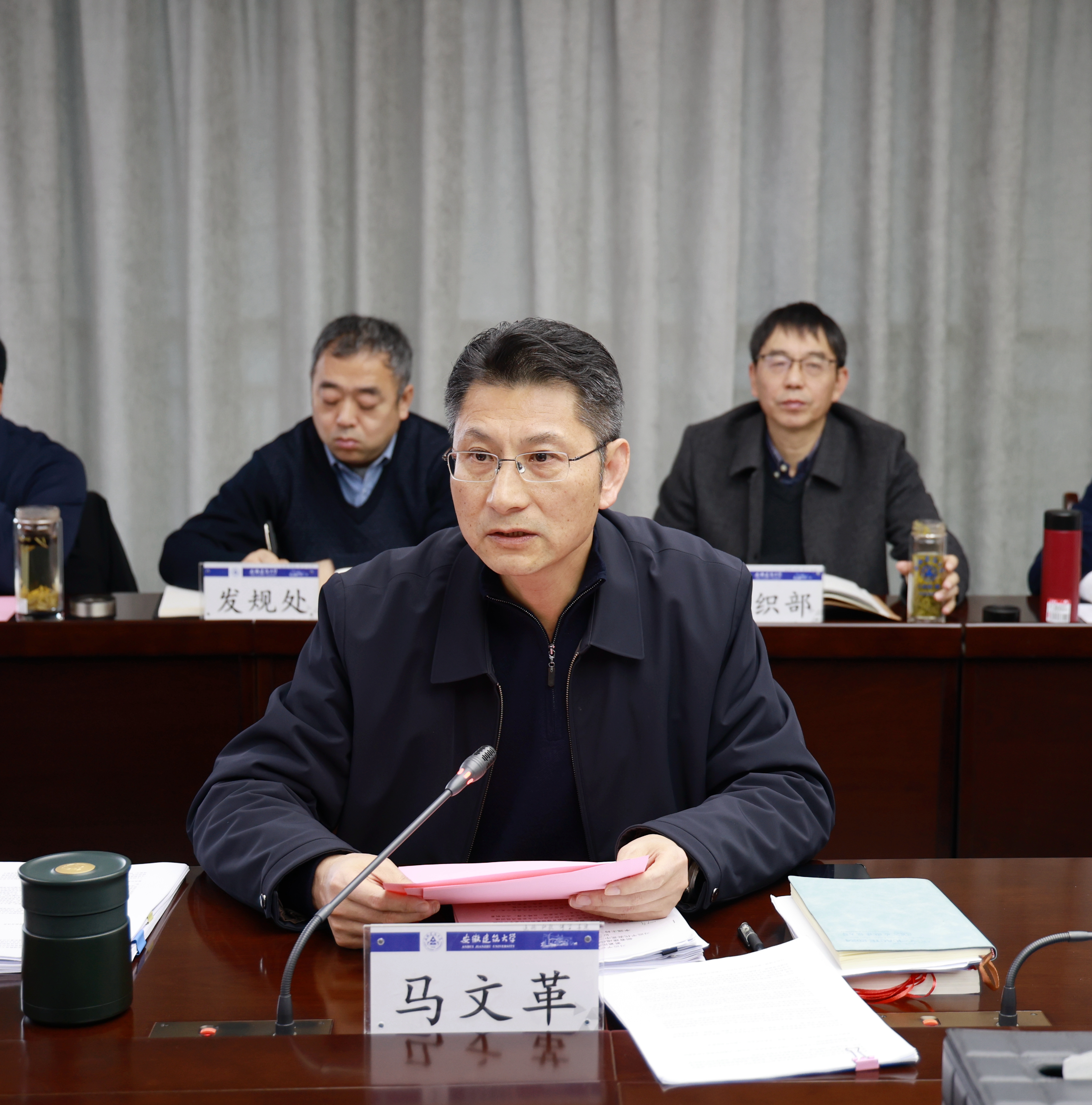 马文革作总结讲话,他强调,此次务虚会既是一次统一思想、凝聚共识、集思广益的“头脑风暴”,也是一次理清思路、明确方向、加压奋进的“战前动员”。当前高等教育竞争日趋激烈,学校正处于内涵发展、提质增效、爬坡过坎的关键阶段,科学谋划2026年工作和“十五五”规划乃至更长一段时间的工作,对推动学校实现跨越式发展、服务国家和区域重大战略需求具有至关重要的意义。全校上下进一步提高政治站位,深入学习贯彻党的二十届四中全会精神,牢牢把握教育强国建设内涵要求,始终坚持为党育人、为国育才根本任务,坚决做到“六个坚持”:一是坚持思想解放和观念更新,以创新理念破解发展桎梏,积极探索新思路、创新实践新办法、开拓发展新路径;二是坚持系统思维,始终树牢大局意识,强化点线面体协同联动构筑发展合力;三是坚持问题导向,聚焦人、事、物核心要素,压实院校两级管理体制;四是坚持统筹安全和发展,严守意识形态安全、师生生命安全底线,常态化强化廉洁自律教育,以底线思维筑牢发展根基;五是坚持加强党的领导,以高质量党建引领学校事业高质量发展,推动党建工作与业务工作深度融合、同频共振;六是坚持统筹近期和长远的关系,立足当下、抓实当前,以近期工作的扎实推进筑牢长远发展基础,锚定五年规划、十年发展蓝图,层层传导压力、逐级落实责任,确保长远发展目标稳步实现。他要求,校领导班子要充分发挥“头雁效应”,带头担当作为、带头攻坚克难;各单位要协同联动、密切配合,强化责任落实、提升履职效能;全体教职工要凝心聚力、奋勇争先,立足岗位实干笃行,共同推动学校朝着国内一流、特色鲜明的高水平建筑大学目标奋勇前进,为谱写中国式现代化安徽篇章作出新的更大贡献。