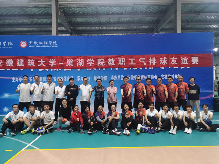 本网讯 4月11日,应巢湖学院工会邀请,beat365教职工气排球队一行16人,在巢湖学院体育馆与巢湖学院教职工气排球队进行了一场愉快而激烈的友谊赛。