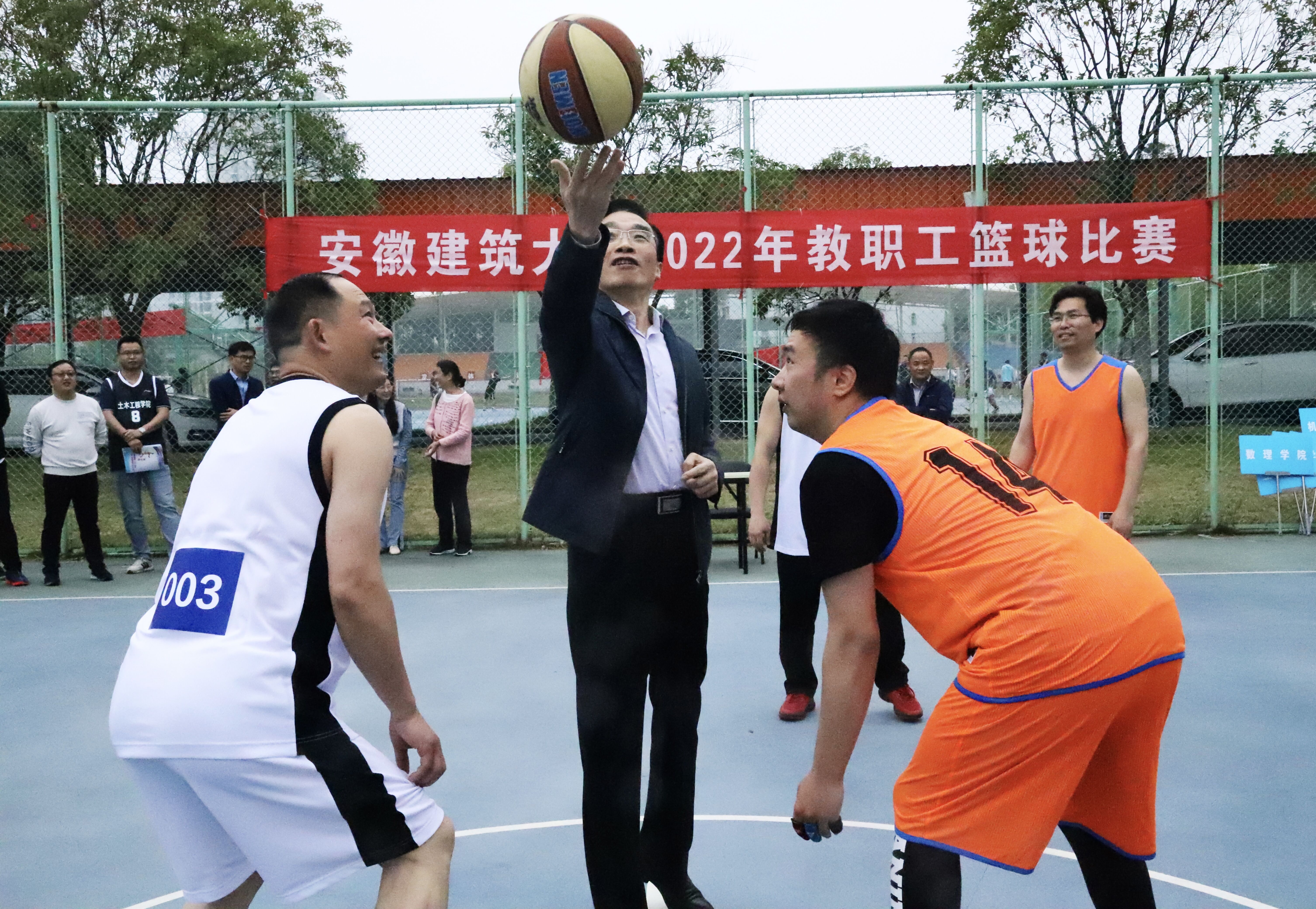 本网讯 为增强教职工体质,丰富教职工业余文化生活,不断提高学校篮球运动水平,5月11日,学校2022年教职工篮球比赛在南校区室外篮球场举行。校党委书记孙道胜宣布比赛开幕并为比赛开球。他希望大家在赛场上发扬拼搏精神的同时,保重身体、安全参赛。他勉励各支队伍赛出水平、赛出风格、赛出友谊,文明参赛,并预祝赛事取得圆满成功。