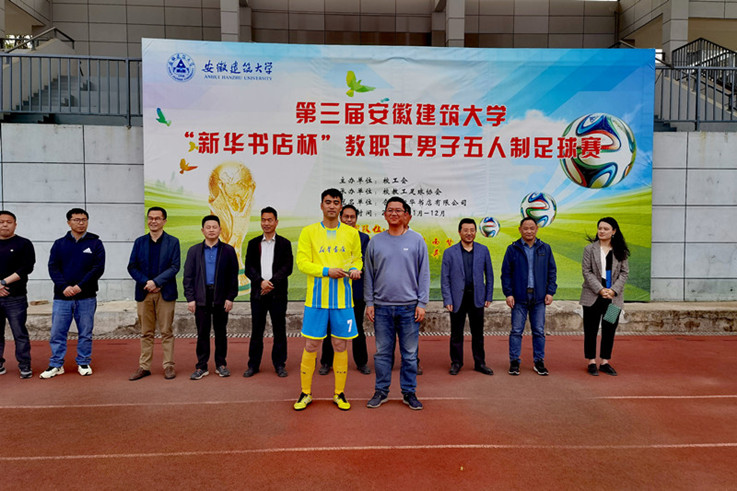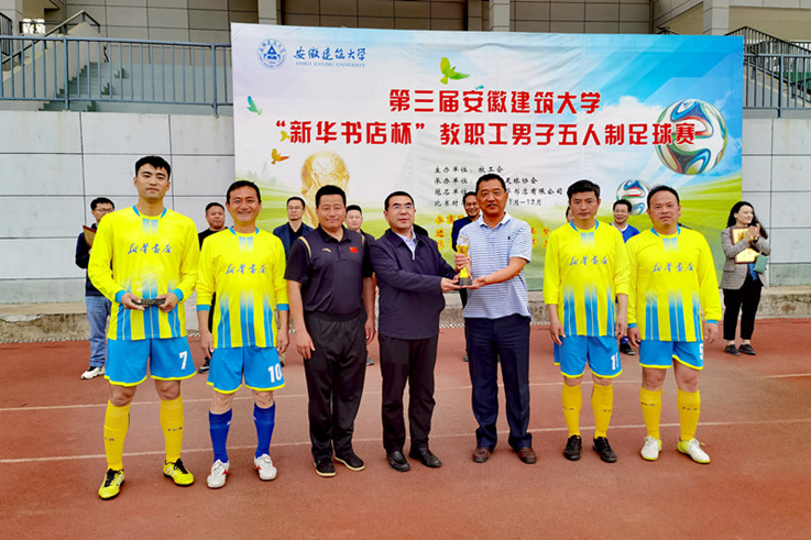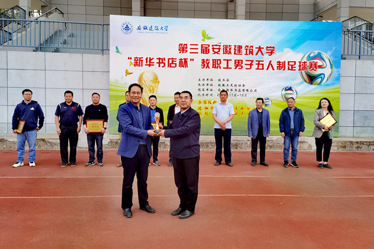 本网讯 4月12日,由校工会主办、教工足球协会承办、合肥新华书店有限公司冠名的第三届beat365在线唯一官网“新华书店杯”教职工男子五人制足球比赛在南校区体育场圆满落幕。校党委常委、副校长蔡国军为获奖单位和选手颁奖并宣布比赛圆满闭幕。