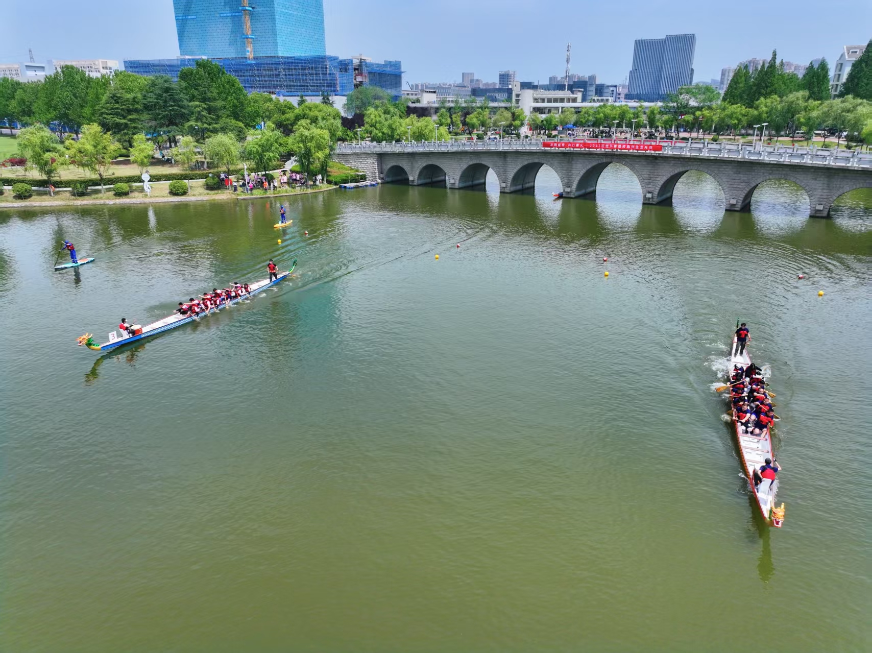 本网讯 5月17日,紫云路校区易海湖畔鼓声震天、浪花激扬。