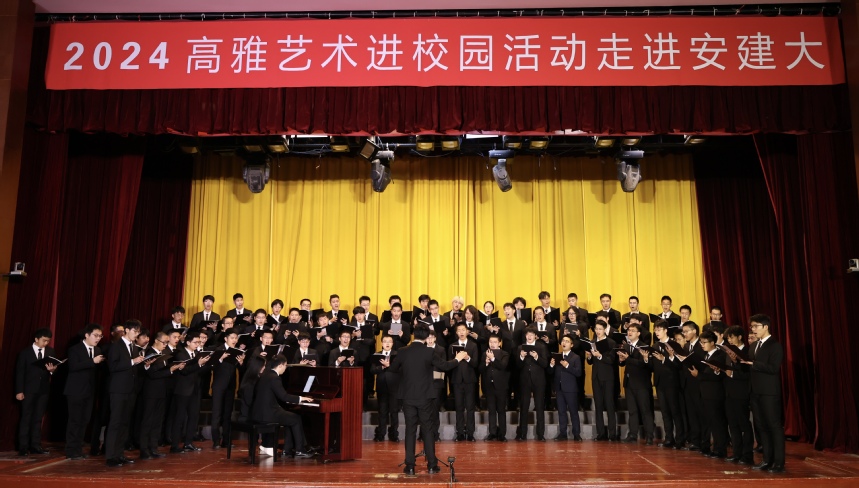 本网讯 近日,“2024年高雅艺术进校园——中国科学技术大学学生合唱团走进安建大”活动在beat365大学生活动中心举行。本场音乐会以中国当代合唱作品为主题,用音乐语言传递了中华民族在新时代昂扬奋进的精神风貌,为全校师生们献上一场艺术与思想交相辉映、情感与智慧共鸣的视听盛宴。