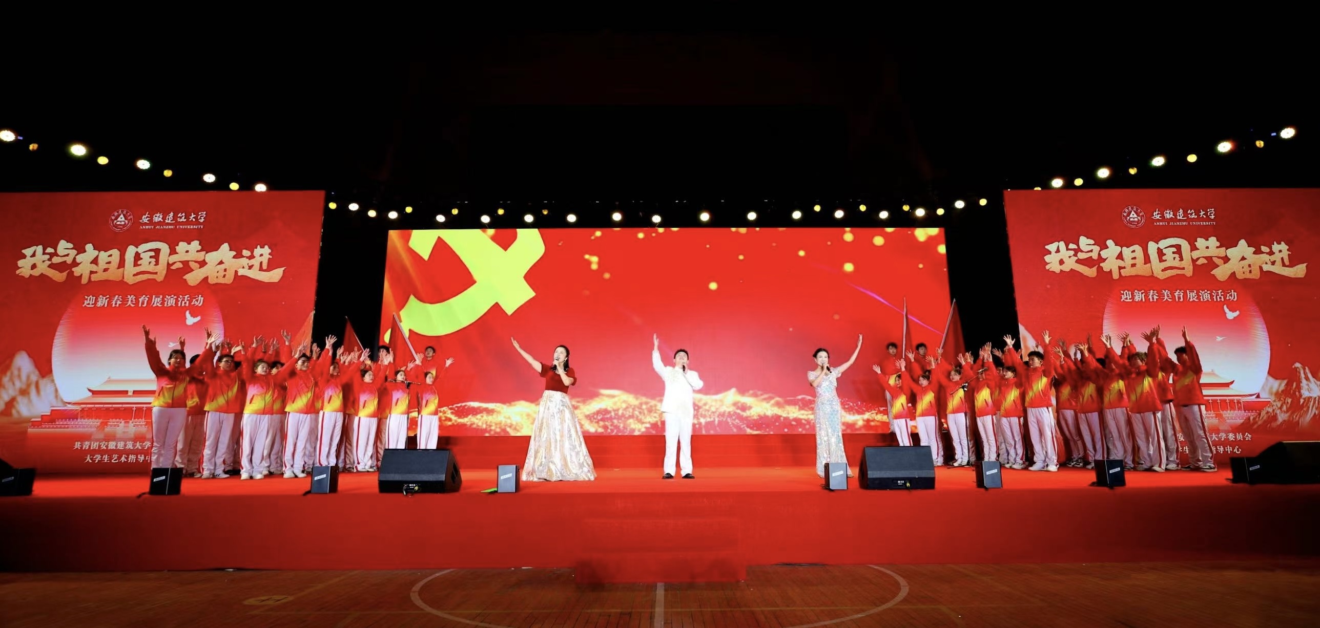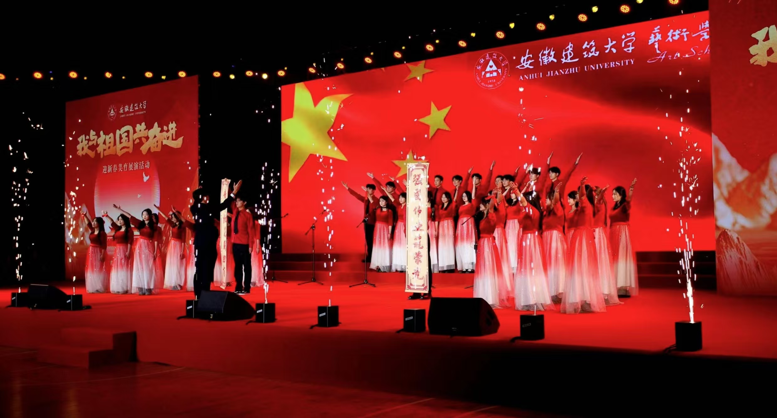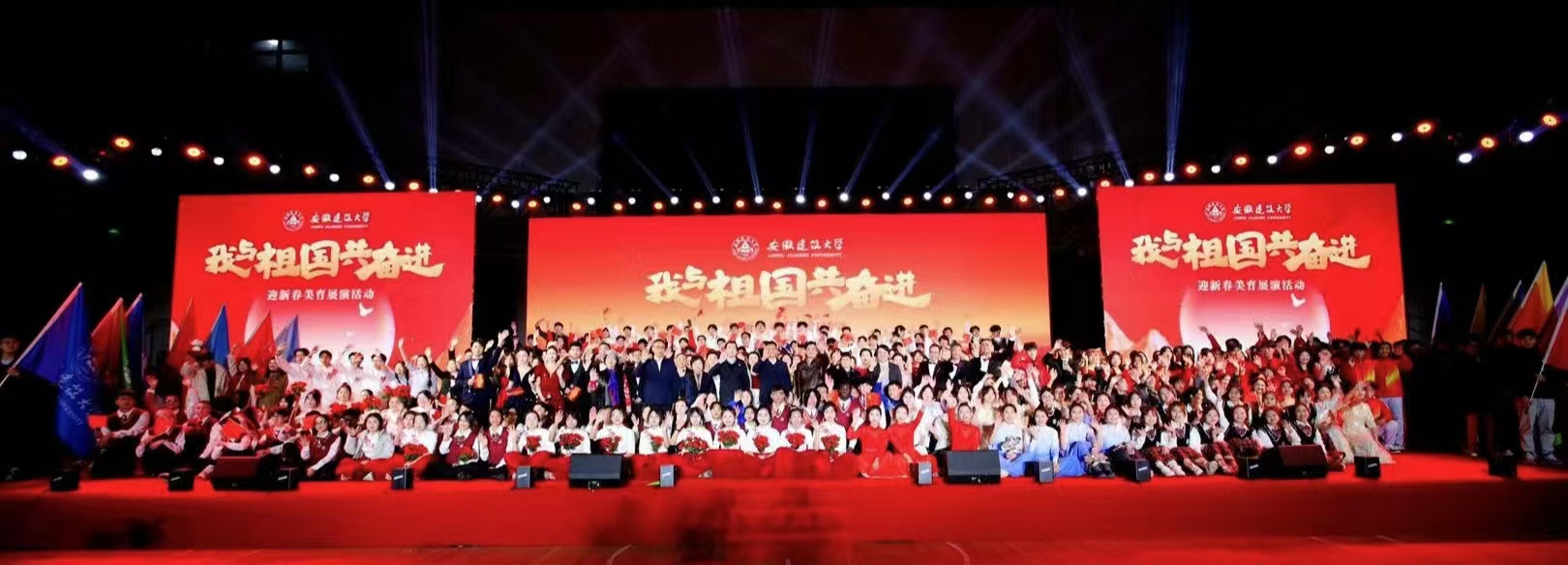 《歌唱祖国》那熟悉经典的旋律引发全场大合唱,深情的歌声唱出了全体师生与祖国心心相印、共同奋进的心声,歌声中,有对祖国大好河山的赞美,有对祖国辉煌成就的自豪,更有对祖国未来发展的坚定信心,为整个展演活动画上了圆满的句号。