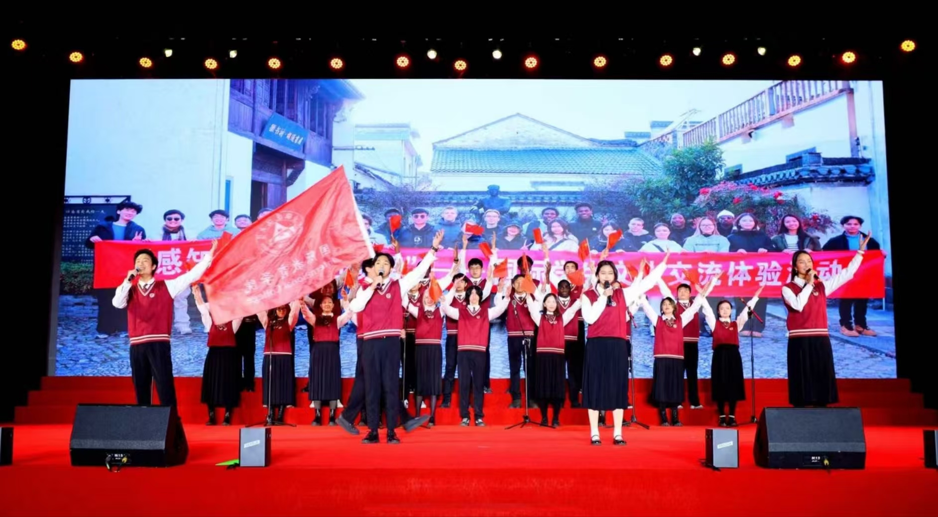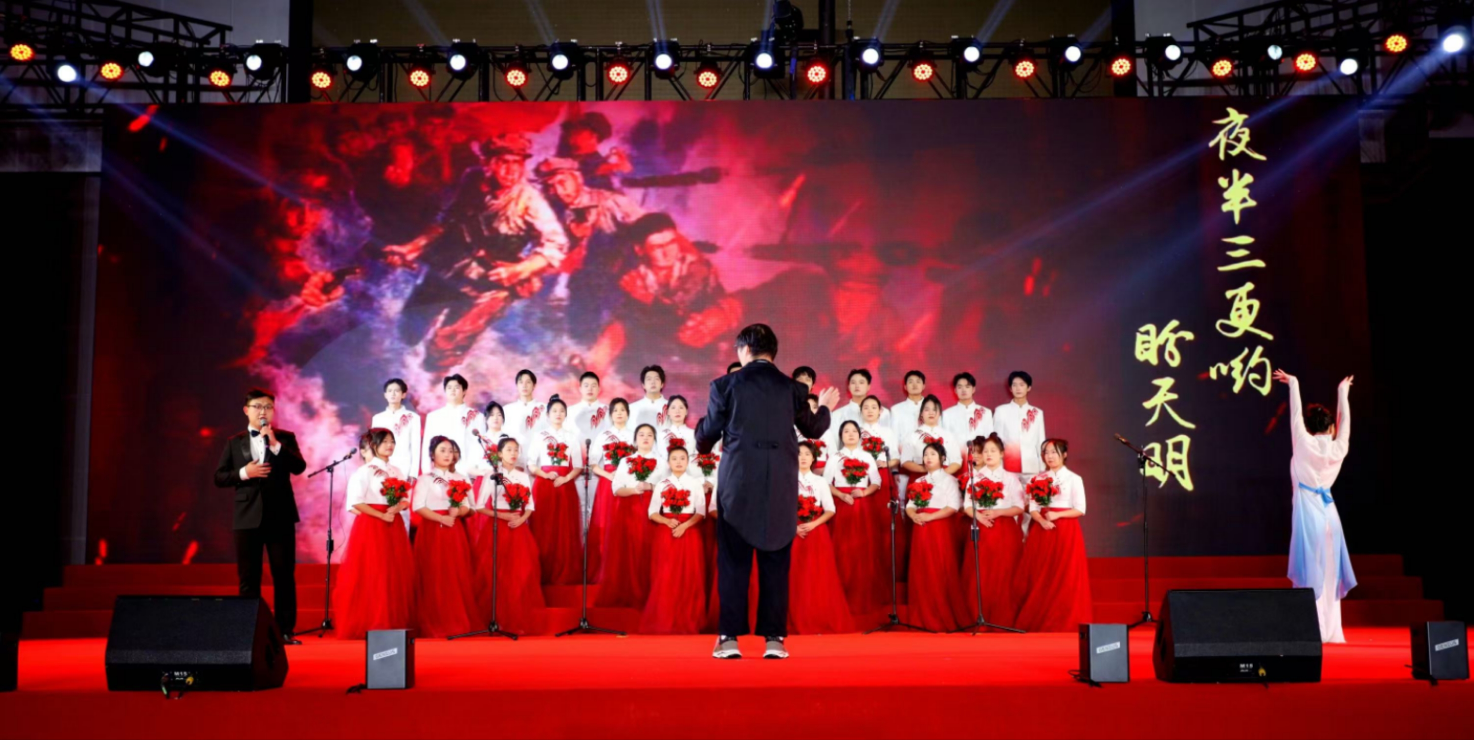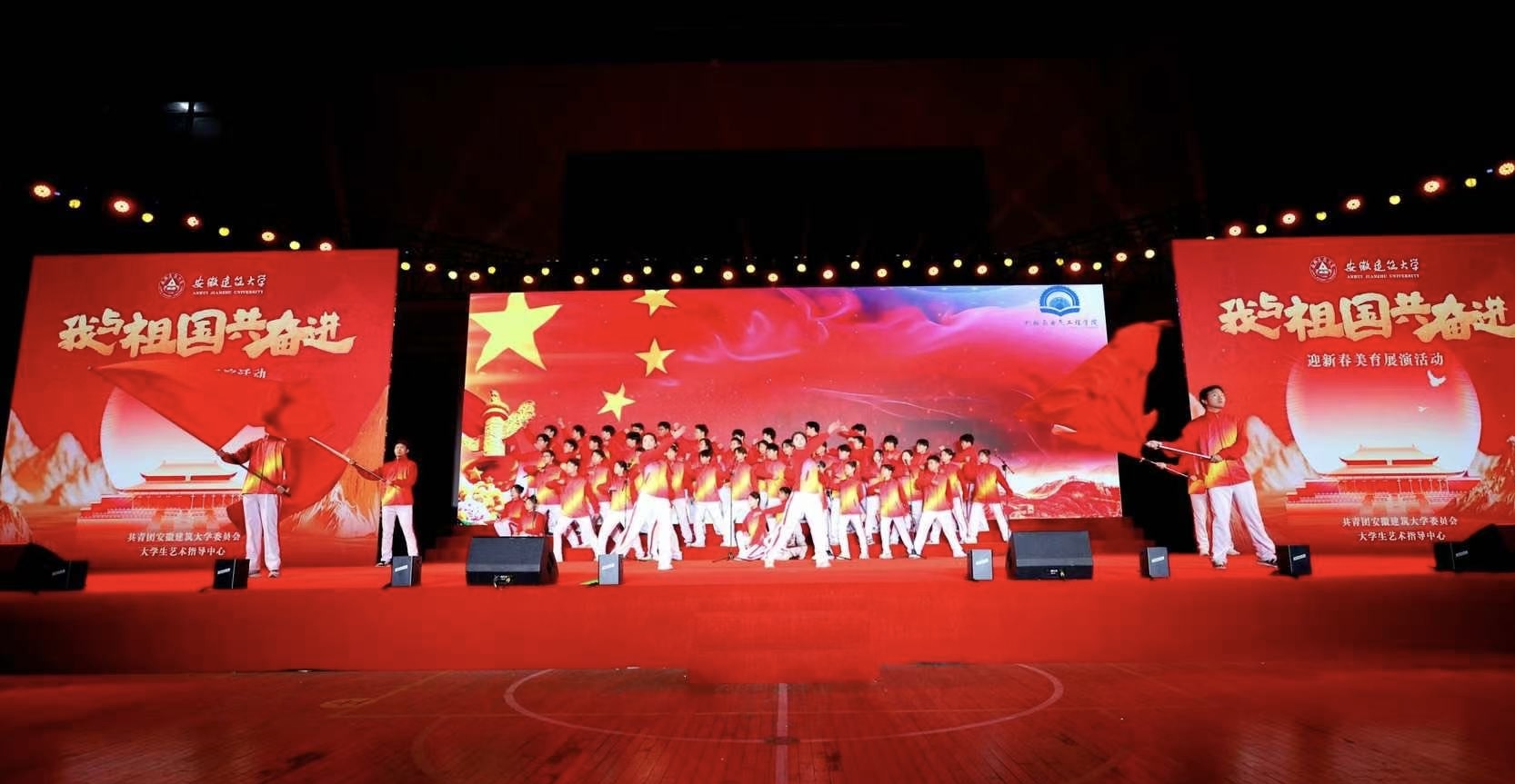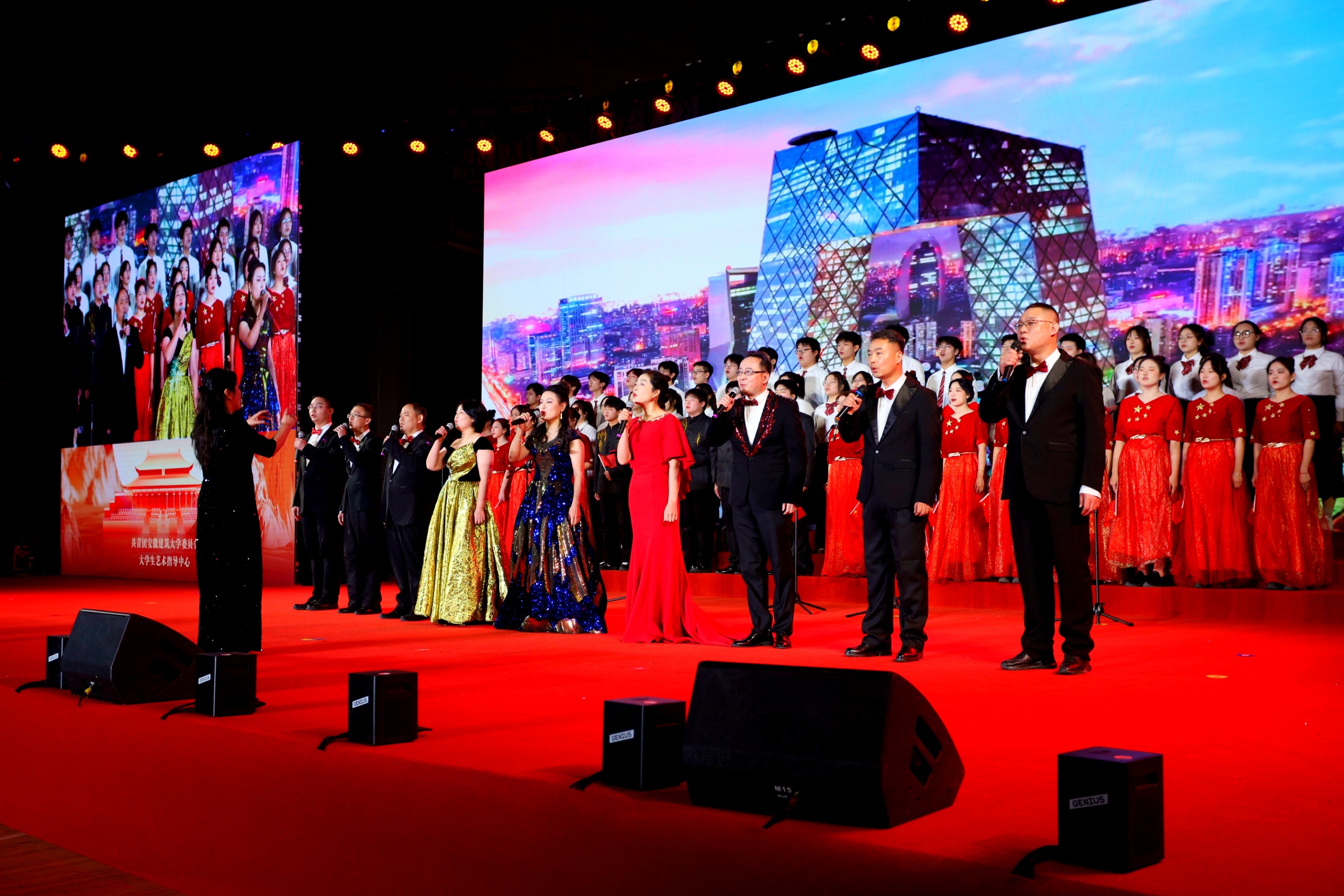 《歌唱祖国》那熟悉经典的旋律引发全场大合唱,深情的歌声唱出了全体师生与祖国心心相印、共同奋进的心声,歌声中,有对祖国大好河山的赞美,有对祖国辉煌成就的自豪,更有对祖国未来发展的坚定信心,为整个展演活动画上了圆满的句号。