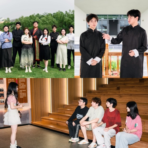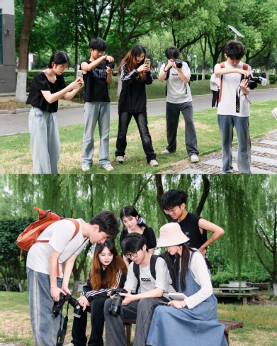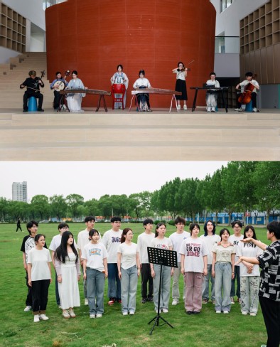 经纬书院内,传统文化魅力尽显。民乐俱乐部成员指尖灵动,音符如涟漪在庭院水池中散开,与书香墨韵相融,绘就一幅雅致的文化图景,情景剧俱乐部在校史馆,依托馆藏文献资料,深入挖掘校史故事,找寻厚重的校史记忆,以“沉浸式”创作表达对学校深厚的感情。摄影穿梭各活动现场,用镜头定格美育实践的精彩瞬间。校园草地化身为露天剧场,蓝天为幕、绿草为席,悠扬歌声吸引众多师生驻足聆听。美育俱乐部的同学们席地而坐,在微风中共享艺术之美,整个校园洋溢着欢快氛围。