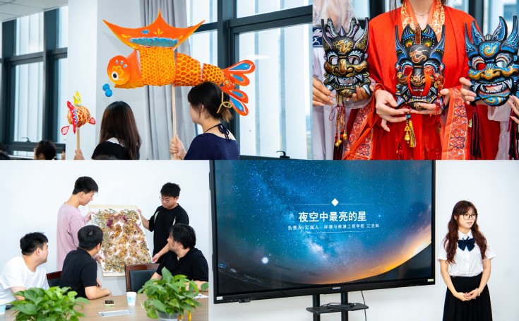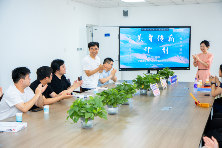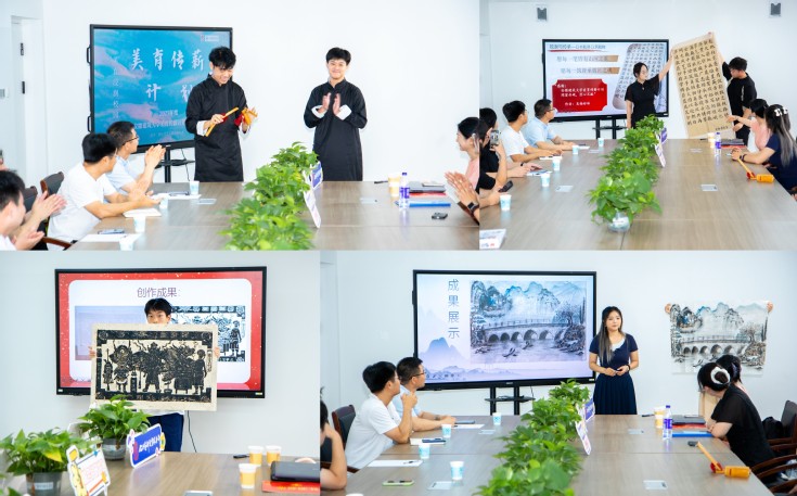 2025年度“美育传薪计划” 团队成员带着原创美育成果,走进建大科研特区,与特种电线电缆国家地方联合工程研究中心一线科研人员展开面对面的交流。他们展示的成果,是灵感与匠心的结晶:以建大校训为创作内核的书法作品,力透纸背间传递着建大特有的精神力量;以九月桥为灵感的国画,水墨晕染中勾勒出校园的灵动之美;歌颂安徽革命精神的原创快板书,节奏铿锵间激荡起爱国情怀、非遗鱼灯、木刻版画,承载着文化传承的使命。科研人员与同学们热烈探讨,思维的火花在艺术与科技的碰撞中迸发,打破壁垒,实现人文与科技的跨界对话。科研人员也向同学们分享学校最新科研项目进展,点亮了同学们探索未知的明灯,大家携手并肩,共同为建筑大学的发展注入活力。