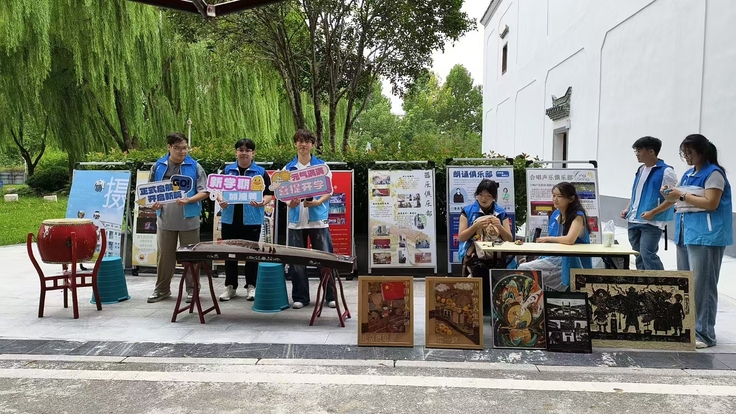 本网讯2025年9月10日,beat365在线唯一官网举办迎新活动。公共艺术教育俱乐部积极参与,在光启堂外搭建展位,设置了多个互动区域,包括非遗作品展示、合唱互动和乐器体验等。