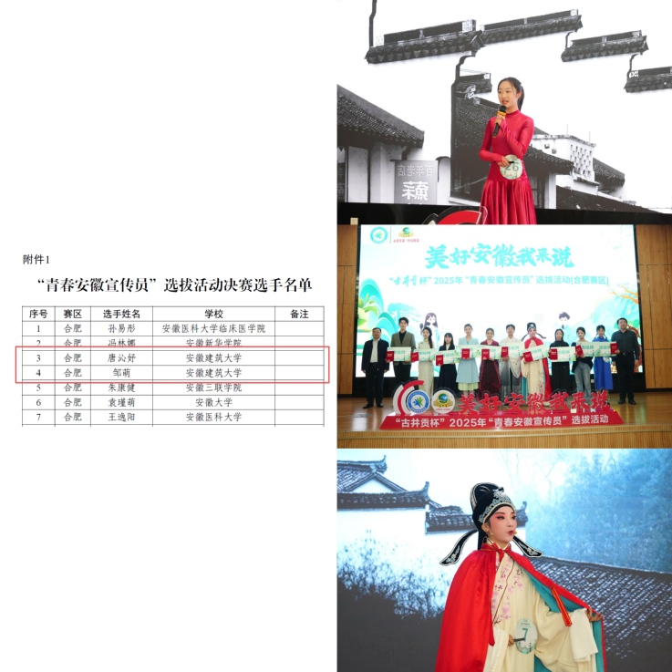 强调“教育性”,红色美育培树青春正气。2025年校团委将“五史”教育与校园文化建设紧密结合,打造青年话语体系的“红色引擎”;弘扬中华传统文化,筑牢青年红色文化根基,让红色基因融入青春血脉。在安徽省大学生戏剧(戏曲)与朗诵专项展演活动中,校团委统筹协调,联合各学院协同发力,紧紧围绕“弘扬中华优秀传统文化”的主题,精心打磨参赛作品,70余名参演学子以饱满的热情和昂扬的姿态,一举斩获一等奖1项、二等奖4项、三等奖6项,共计11项省级荣誉,充分展现了beat365师生团结协作的精神风貌;承办团省委“美好安徽我来说”选拔赛,两名学子成功晋级全省总决赛并获2025年“青春安徽宣传员”称号,生动诠释了学校在美育育人工作中取得的扎实成效。