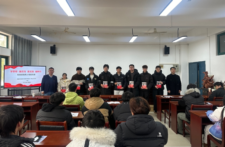 党课结束后,丁超代表校团委党支部向学生党员代表赠送《习近平与大学生朋友们》第二卷,希望他们牢记习近平总书记教诲,汲取奋进力量、廓清成长路径、激发青春豪情,以“闯”的精神和“创”的劲头,努力成长为德智体美劳全面发展的社会主义建设者和接班人。