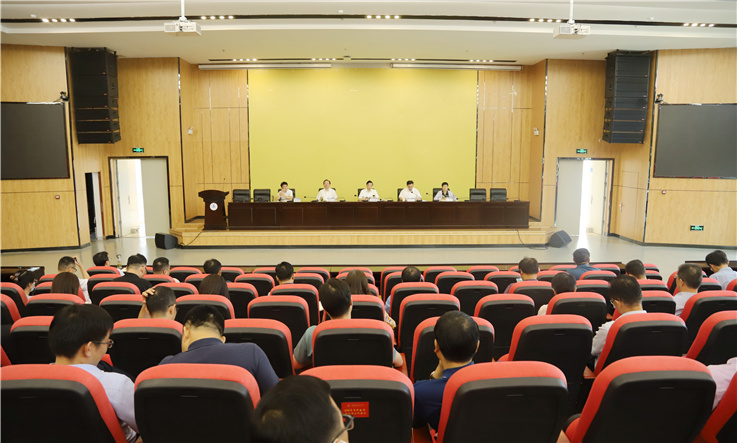 本网讯 6月30日,学校在南校区实验综合楼2楼报告厅召开处级干部大会,总结学校2022年上半年党建和发展工作情况,部署暑期重点工作。校领导班子成员、全校副处级以上干部参加大会。会议由校党委书记孙道胜主持。