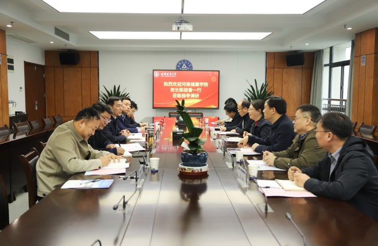 本网讯 3月14日,河南城建学院校长陈桂香、副校长孙玉周一行7人来校调研交流。学校在紫云路校区徽风楼21楼第五会议室召开座谈会,校党委副书记、校长黄显怀主持会议,办公室、教务处、教师发展中心、国资处、后勤管理处、信息网络中心等单位主要负责人参加会议。