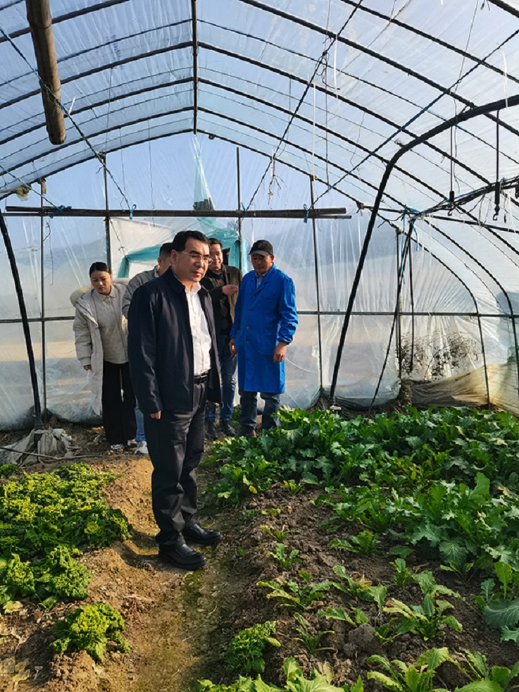 随后,蔡国军一行深入田间地头、产业基地与建设一线,实地察看汤池镇温泉特色资源开发利用、蔬菜大棚特色产业、阴山中心村和美乡村建设风貌及三江研学实践基地规划建设情况。