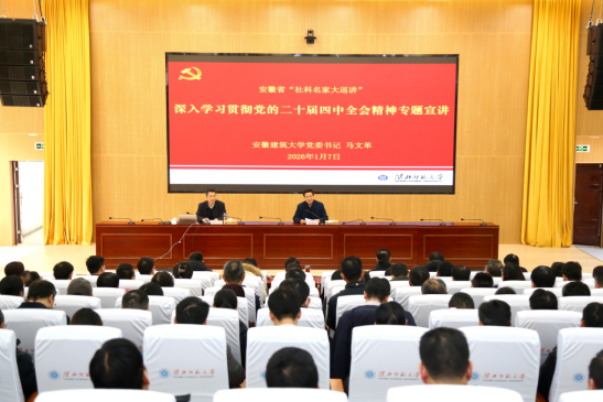 本网讯 2026年1月7日至8日,校党委书记马文革受邀安徽省“社科名家大巡讲”,走进淮北市宣讲党的二十届四中全会精神。先后在淮北师范大学、相山区相南街道办事处,以两场主题鲜明、内容翔实、案例生动的宣讲报告,系统阐释全会精神,引发广泛反响。