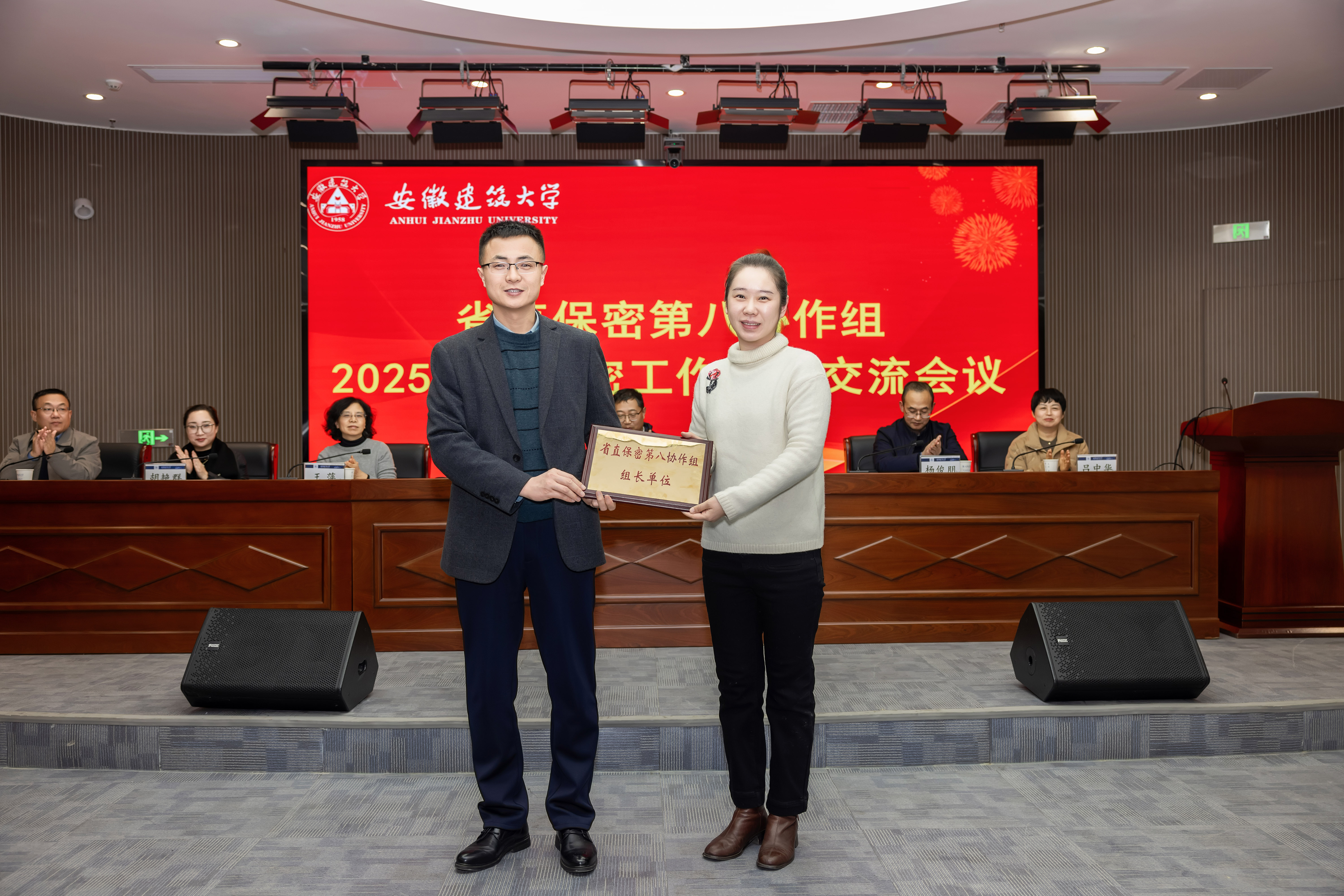 会议举行了2026 年协作组组长单位交接仪式。经各成员单位协商推荐并报省委保密办同意,安徽开放大学当选 2026 年组长单位,安徽艺术学院、安徽警官职业学院分别为第一副组长单位、第二副组长单位。beat365办公室副主任葛建化代表 2025 年组长单位,向安徽开放大学办公室副主任谭冉移交协作组工作交接牌,标志着协作组工作正式平稳过渡。