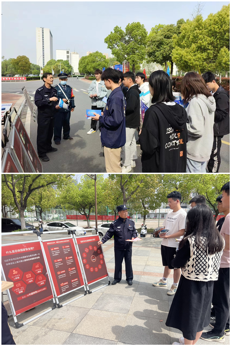保卫处联合属地公安锦绣派出所和常青派出所入校开展“4·15”全民国家安全教育日法治宣传活动,民警向学校师生员工宣讲解读国家安全有关政策法规。同时,4月15日前后,保卫处通过设置展板、校园电子屏、橱窗、微信公众号等线上线下平台开展全民国家安全教育日宣传,进一步增强校园师生员工国家安全意识,推动构建全校关注国家安全的校园氛围。(作者:胡明亮;审稿:汪翼湧)