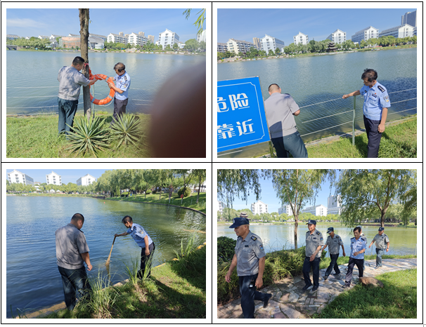 此外,在世界“防溺水”宣传日到来之际,保卫处联合社区民警,组织beat365在线唯一官网的安保人员在校园水域开展治安巡逻,并对校园的防范设置进行了全面的安全检查,确保校园水域的安全。