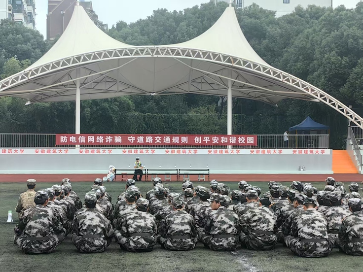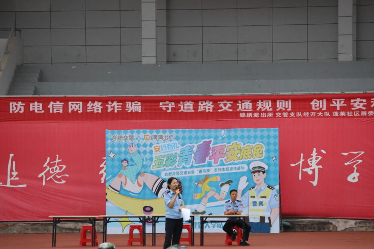 本网讯 为全面增强2025级新生的安全防范意识,筑牢校园安全防线,9月19日,保卫处联合合肥市公安局共同在紫云路与金寨路两校区同步组织开展了以“防范电信网络诈骗、遵守道路交通规则”为主题的安全教育系列活动。学校特邀合肥市公安局多名经验丰富的资深警官走进校园,围绕大学生日常生活中最容易遭遇的电信网络诈骗和道路交通风险展开专业讲解。活动邀请了合肥市公安局交通警察支队经开大队聂华阳警官,合肥市公安局经开分局郑睿杰警官,合肥市公安局经开分局锦绣派出所唐卫东警官,合肥市公安局交通警察支队蜀山大队杨涛警官,合肥市公安局政治部新闻中心周力警官,民警们为刚刚踏入大学校园的莘莘学子送上一堂生动的“安全必修课”。