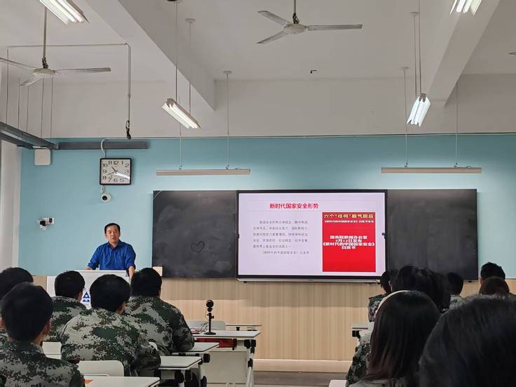 曹书成教授以“深刻把握新时代国家安全形势”为题,为新生们进行了一场内涵丰富、视野宏大的专题授课。曹教授系统阐述了当前我国国家安全面临的内外形势与风险挑战,深入解读了总体国家安全观的核心理念与时代内涵。他勉励同学们要深刻认识维护国家安全的极端重要性,自觉增强国家安全意识,将爱国情、强国志、报国行融入日常学习与未来发展中,成为国家安全的坚定守护者。