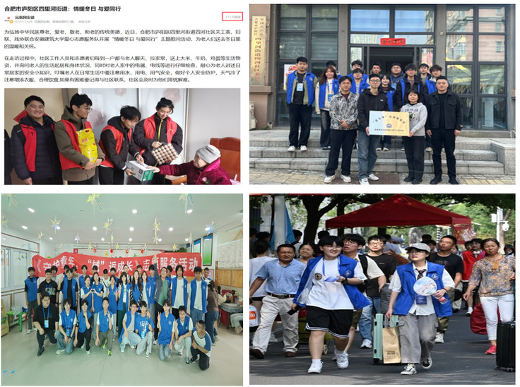支部坚持打造“服务型”支部,把服务师生作为一切工作的出发点和落脚点。贯彻“奉献、友爱、互助、进步”的志愿精神,坚持“立足校园,面向社会”两大服务方向,聚焦学生“急愁难盼”,围绕学业帮扶、义务劳动、关爱老幼、义务献血、科普活动等内容开展志愿服务,“机电蓝马甲”已成为学校志愿者的靓丽名片。2025年1月,志愿服务团队赴四河社区开展“情暖冬日,与爱同行”主题慰问活动被“凤凰新闻网”报道,单篇阅读量超27万;4月,学院“春‘锋’催奋进 ,青春志愿行”学雷锋主题教育实践活动月被安徽省学联报道。