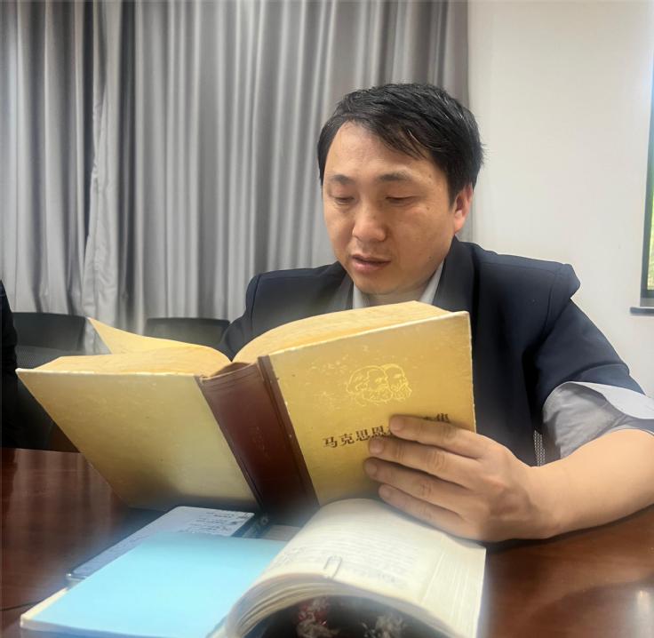 随后,郭峥老师为大家读原著《共产党宣言(节选)》,张举分享党史故事。(文/图:陆娟、王业;审稿:仲勇)