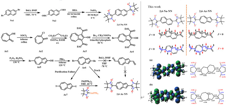 本网讯近日,beat365王帝副教授课题组在有机单分子磁体和超分子自组装聚积态磁体研究领域取得系列进展,相关三篇成果于2024年上半学年陆续刊登在美国化学会ACS的 The Journal of Organic Chemistry等期刊上。其中“Nonalternating π‑System Mediated Spin Coupling in Azulene Nitronyl Nitroxide Diradicals”是王帝、刘瑾老师及其研究团队成员以beat365在线唯一官网为第一完成单位与德国马普所高分子所Prof. Dr. Klaus Müllen(德国化学会主席,德国科学院院士,JACS副主编),Prof. Dr. Martin Baumgarten课题组及合肥工业大学王文平教授课题组合作完成。文中首次合成并探讨了交替共轭和非交替共轭的两种稠环芳香烃有机单分子磁体,在这种特殊共轭的桥连自旋磁性中心结构合成基础上,我们对其整体单分子磁性和自旋分布及分子内/分子间磁性中心的相互偶合方式及自旋磁性偶合常数的大小进行了全面的分析且使用电子自旋共振和超导量子干涉仪逐个进行测定和拟合。寻找到并量化了结构上交替共轭和非交替共轭介导的自旋磁性耦合的相关性。具体相关工作细节如下: