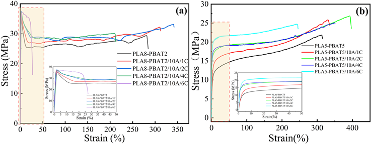 传统石油基高分子材料的大量使用导致的环境问题及 双碳要求逐步提高促使可生物降解材料的应用范围逐步拓宽其中聚乳酸聚己二酸-对苯二甲酸丁二醇酯(PLA/PBAT)共混物凭借其独特的降解性能以及优异的机械性能是目前的工业开发的热点。为进一步扩展PLA/PBAT共混物材料在一次性消费电子领域的应用,研究团队持续开展了对PLA/PBAT共混物高性能化的研究。本工作中通过引入一种自主设计的多功能环氧低聚物(MEO,环氧当量值310)作为PLA/PBAT共混物基体的扩链剂,在加工过程中构筑一种界面交联结构,有效增加了两相间的界面粘合力同时,通过基体比例的调节,诱导了材料微观相形貌的转变,并以此达到通过基体调控碳纳米管(CNTs分散的目的。