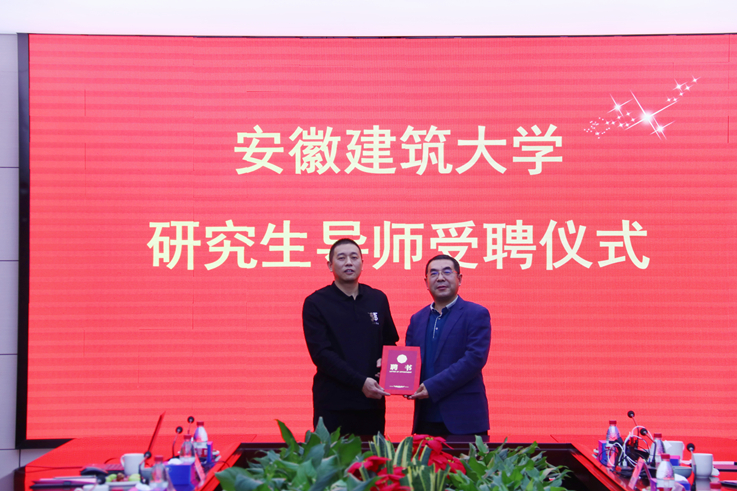 安徽建筑大学研究生院、发展规划处、材料与化学工程学院领导和安徽苏亚建设集团有限公司高管参加了研究生兼职导师受聘暨材料与化学工程学院研究生实践教学基地签约仪式。(文图:王爱国;审稿:丁益)