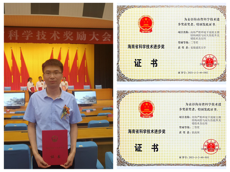 本网讯 2022年11月15日,在海南省政协大会堂隆重举行了2021年度海南省科学技术奖励大会,海南省省委书记沈晓明、海南省省长冯飞、海南省政协主席毛万春、常委沈丹阳、常委冯忠华、常委王斌、常委巴特尔、副省长王路出席会议并为获奖单位和个人颁奖,冯飞省长主持会议,沈晓明书记发表重要讲话。beat365先进土木工程材料科研团队张高展教授牵头完成的“南海严酷环境下混凝土微结构调控和耐久性提升关键技术”项目荣获海南省科技进步奖二等奖,这也是2021年度海南省建设工程和建筑材料技术领域唯一获批的科技进步奖。该项目由beat365联合海南瑞泽新型建材股份有限公司、武汉理工大学、青岛理工大学和海南省众邑新材料研究院有限公司联合完成。