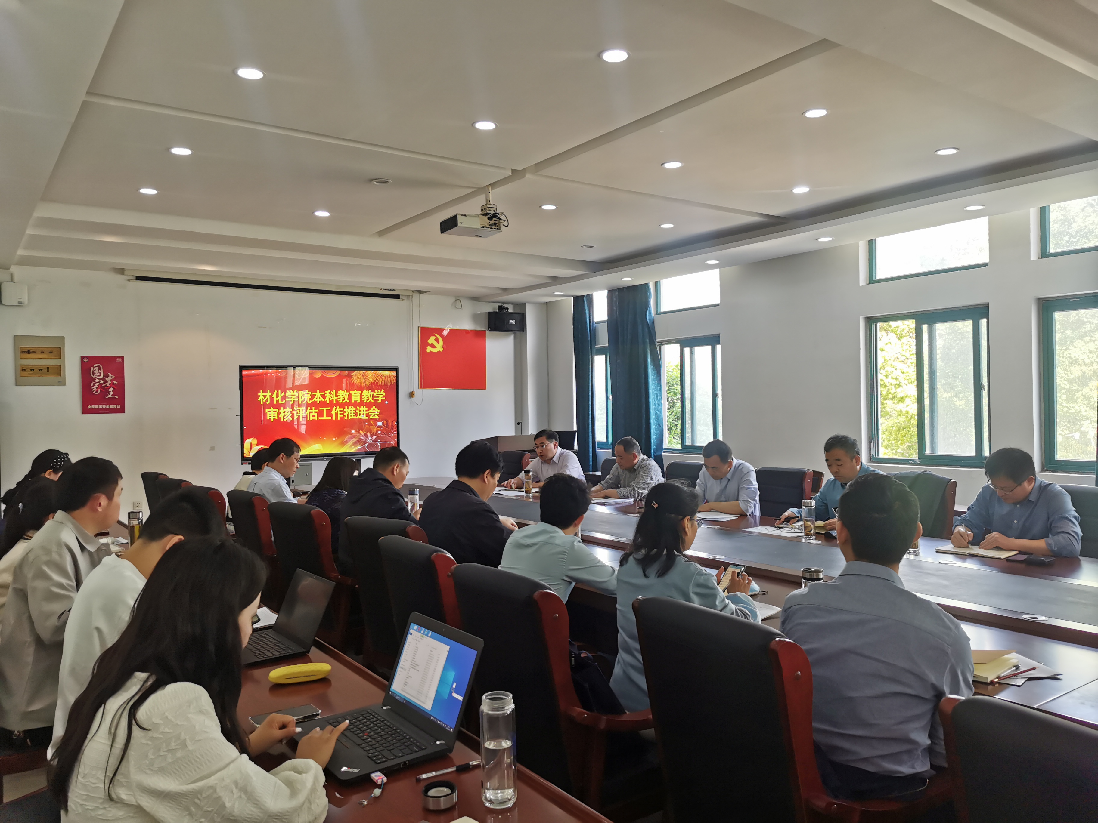 本网讯 为扎实推进本科教育教学审核评估工作,落实现阶段自评自建工作任务,4月17日,材化学院在会议室召开了本科教育教学审核评估工作推进会。会议由院长丁益主持,学院领导班子成员、各专业系、中心主任、院评建办及全体行政人员、辅导员参加了会议。