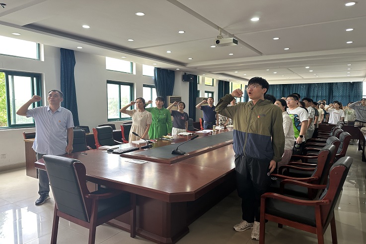 本网讯,为进一步增强党员党性修养,强化党员身份意识,7月1日上午,材化学院在学院会议室举办新发展党员入党宣誓暨党员重温入党誓词仪式。学院党委书记、学生党支部书记、全体学生党员参会。