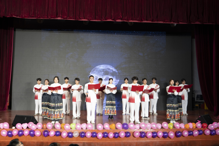 随后,一场视听盛宴正式上演。晚会节目丰富多彩,涵盖了歌曲、舞蹈、小品、朗诵、话剧等多种艺术形式,展现了材化学子多才多艺的一面。