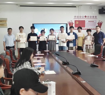 张峰君主持会议并宣读获奖学生名单,袁海鑫等8名同学获得一等奖,徐国豪等10名同学获得二等奖,程楠等12名同学获得三等奖,王爱国和张峰君为获奖同学颁发获奖证书和奖品。