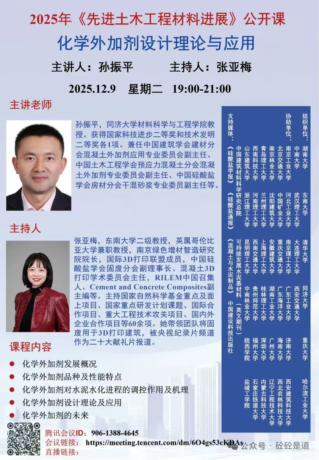 2025年《先进土木工程材料进展》公开课--化学外加剂设计理论与应用