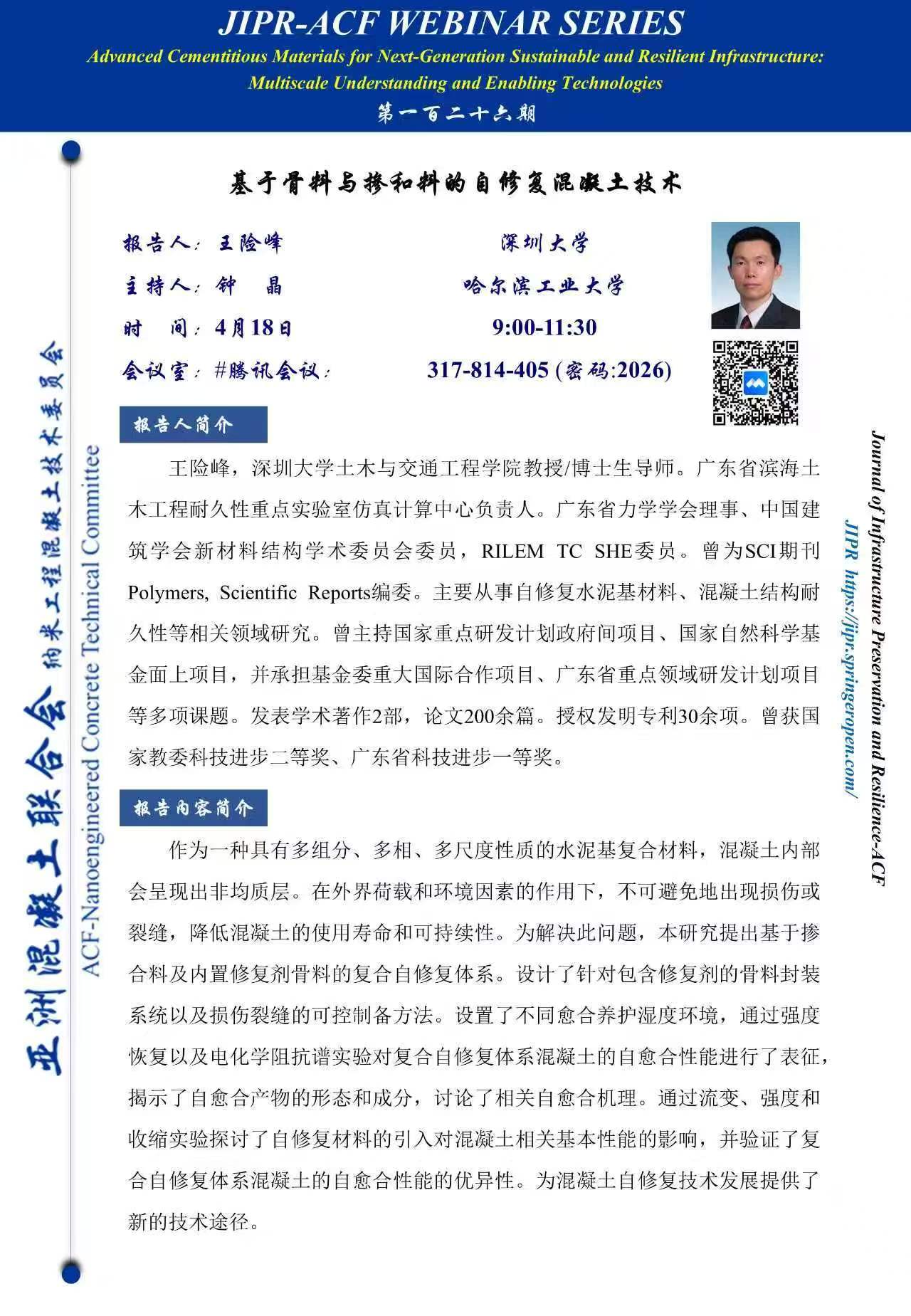 学术报告--基于骨料与掺和料的自修复混凝土技术
