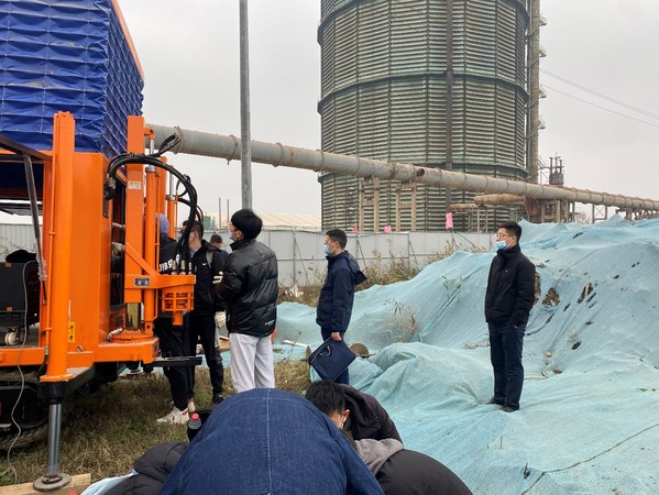 本次测试分别开展了地质雷达探测、CPTU测试、高密度电法测试和无人机测绘等,上述测试分别由闫超老师、殷帅老师、刘薛宁博士开展具体指导,包括设备使用方法及注意事项,并对研究生们的试验过程进行指导纠正。在两天的试验中,课题组成员们冒着霏霏细雨,坚守在现场一线,对马合钢B地块污染场地中2个孔位点作了CPTU测试与调查,并在现场进行了土样的采集。