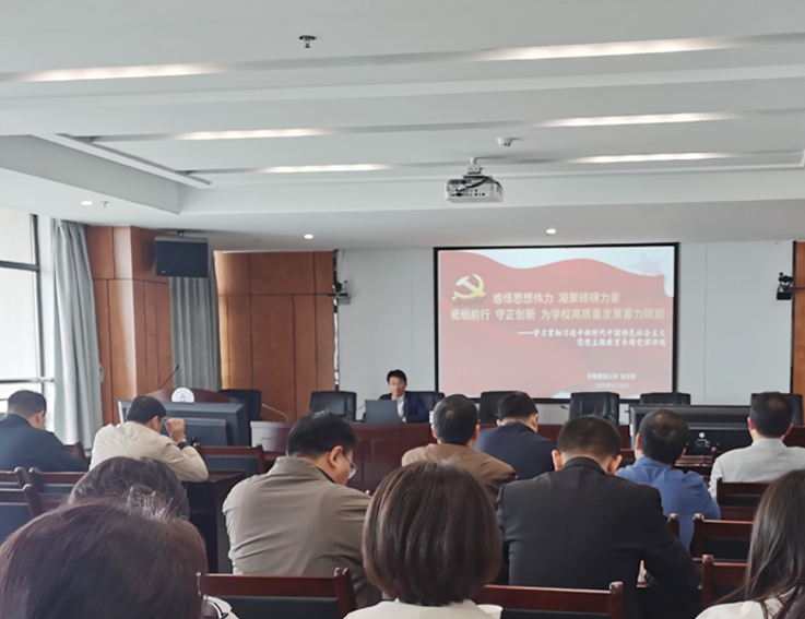 张亚新从“思想的伟力”“开展主题教育的时代意义、总要求、根本任务”“习近平新时代中国特色社会主义思想的丰富内涵”“习近平总书记关于教育的重要论述”“为学校赓续发展新征程蓄力赋能”五个方面进行全面深刻阐释,引导师生党员坚决贯彻落实党中央和省委部署要求,站在坚定拥护“两个确立”、坚决做到“两个维护”的政治高度,深入开展学习贯彻习近平新时代中国特色社会主义思想主题教育,认真学习贯彻习近平总书记关于教育工作的重要论述,将主题教育“学思想、强党性、重实践、建新功”的总要求,落实在努力开创学校高质量发展新局面的各项工作中。