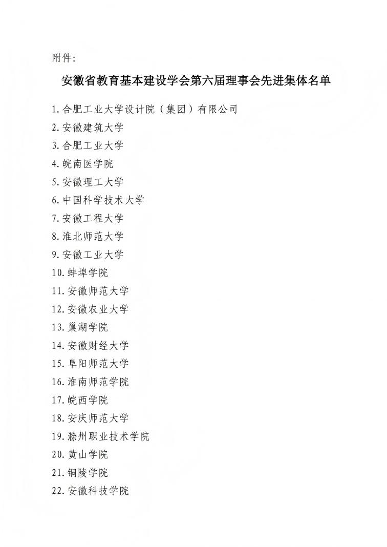本网讯 近日,在安徽省教育基本建设学会发布的《关于表彰安徽省教育基本建设学会第六届理事会履职期间先进集体的决定》(教基学[2026]2号)中,学校设计研究总院被授予“安徽省教育基本建设学会第六届理事会先进集体”荣誉称号!