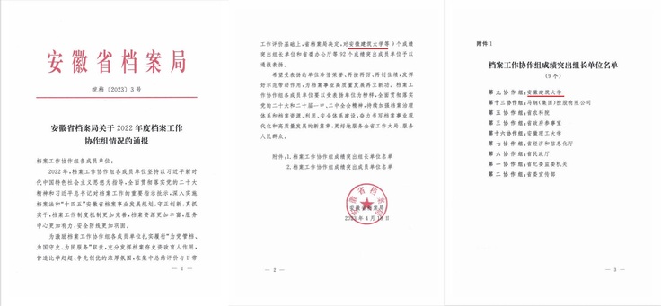 本网讯 4月18日,《安徽省档案局关于2022年度档案协作组工作情况的通报》(皖档函〔2023〕3号)印发,beat365荣获“2022年度档案工作协作组成绩突出组长单位”称号。