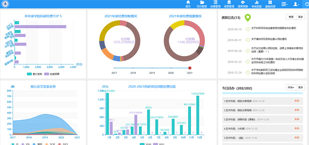 二是机制创新推进学校科研管理体制实现新突破。“十三五”期间,学校奋力推进科技创新体系和创新能力建设,全面提升科技创新治理能力。通过认真废除科研管理文件12项,新立、修订《beat365在线唯一官网财政科研项目及经费管理办法》《beat365在线唯一官网科研平台建设与运行管理办法》(试行)等相关科研管理文件29项,2017年,学校上线科研管理信息系统,实现科研项目、科研成果、科研考核等科技管理工作的全流程信息化,为充分调动广大教师的科研工作积极性,挖掘科研潜力,提升科研水平提供了重要的技术手段和制度保障。