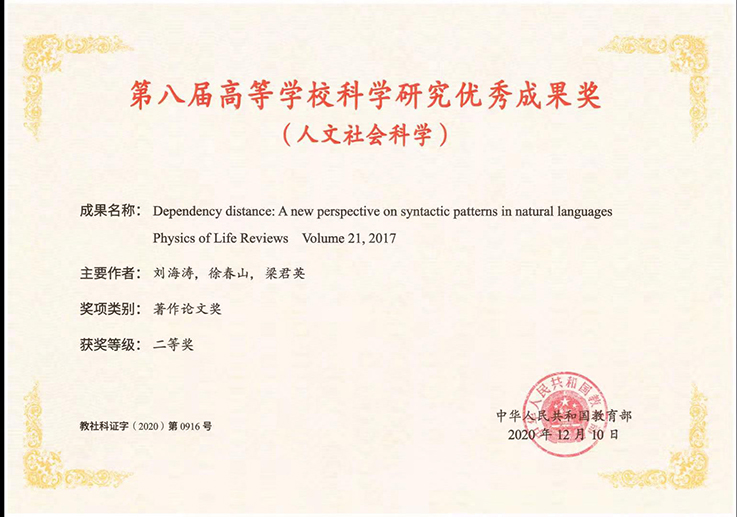 七是政治引领推进学校哲社工作发展进入新阶段。“十三五”期间,学校以习近平新时代中国特色社会主义思想为指导,加强对学校社科工作的政治引领,发挥哲学社会科学在立德树人教育培养中的重要作用,扎实做好新形势下学校哲学社会科学工作。2019年,成立了beat365在线唯一官网哲学社会科学联合会,充分发挥社科联桥梁纽带作用,协同推进哲学社会科学各学科建设。人文社科类科研项目立项300余项,总经费约960万元。近5年来,学校充分发挥智库作用,主持为省领导决策提供服务的《安徽省房地产去库存应用对策研究》等多项课题的研究工作;主持编制《安徽省建筑业“十三五”发展规划》等4项省住建厅“十三五”专项规划;发布政策、咨询报告6份。在疫情防控及疫后恢复经济社会建设、健全国家应急管理体系、完善重大疫情防控救治体系、健全应急物质保障体系等方面开展研究,完成并上报7份高质量研究报告至安徽省委宣传部。2020年底beat365徐春山教授与浙江大学刘海涛教授、梁君英教授合著的论文“Dependency distance: A new perspective on syntactic patterns in natural languages ”获第八届高等学校科学研究优秀成果奖(人文社会科学)交叉学科二等奖。